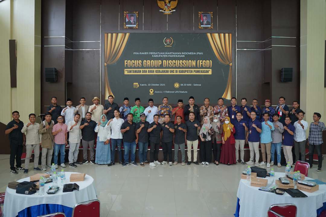 Faktualpost.com Persatuan Wartawan Pamekasan Indonesia (PWI) Kabupaten Pamekasan menggelar Focus Group Discussion (FGD) di Lantai 4 Gedung Rektorat UIN Madura, Kamis (30/10/2025). Kegiatan tersebut mengangkat tema Tantangan dan Arah Kebijakan UHC di Kabupaten Pamekasan.