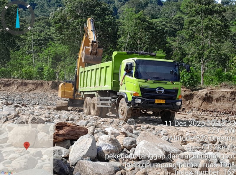 Ruas Meureudu – Batas Pidie Jaya/Bireuen: Akses fungsional total untuk semua kendaraan sejak 12 Desember 2025 setelah penimbunan oprit jembatan rampung.