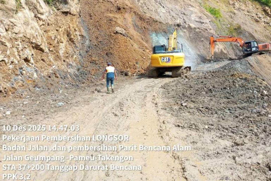 Selain itu, Ruas Jalan Kota Bireuen – Batas Bireuen/Bener Meriah juga telah terhubung kembali sejak 18 Desember 2025. Hal ini tercapai setelah pemasangan Jembatan Bailey di Teupin Mane dan penanganan sementara pada titik longsoran selesai dilakukan.