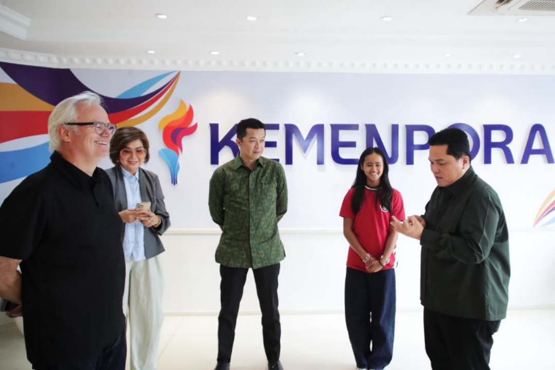 Menpora Erick yang didampingi Wamenpora Taufik Hidayat hari Jumat (03/10) pagi, menerima Zazi Betari Landman di ruangan kerjanya lantai 10, Kemenpora, Senayan, Jakarta.