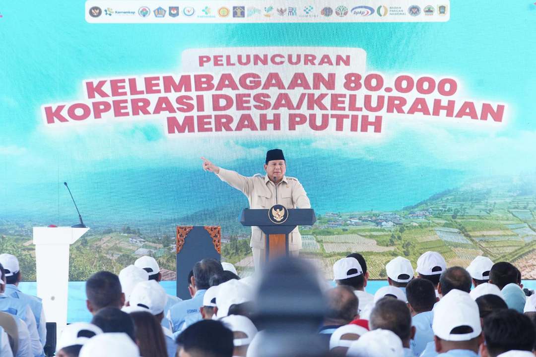 “Saudara-saudara, 80 ribu koperasi ini adalah upaya kita memperpendek rantai distribusi bahan-bahan penting bagi rakyat. Rakyat kecil yang ekonominya masih lemah harus punya akses terhadap kebutuhan dasar dengan harga terjangkau,” ujar Presiden Prabowo.